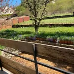 С террасы открывается вид на сад. В ванной комнате также есть отдельный туалет и душ. Кроме того, для удобства гостей предусмотрены фен и полотенца.